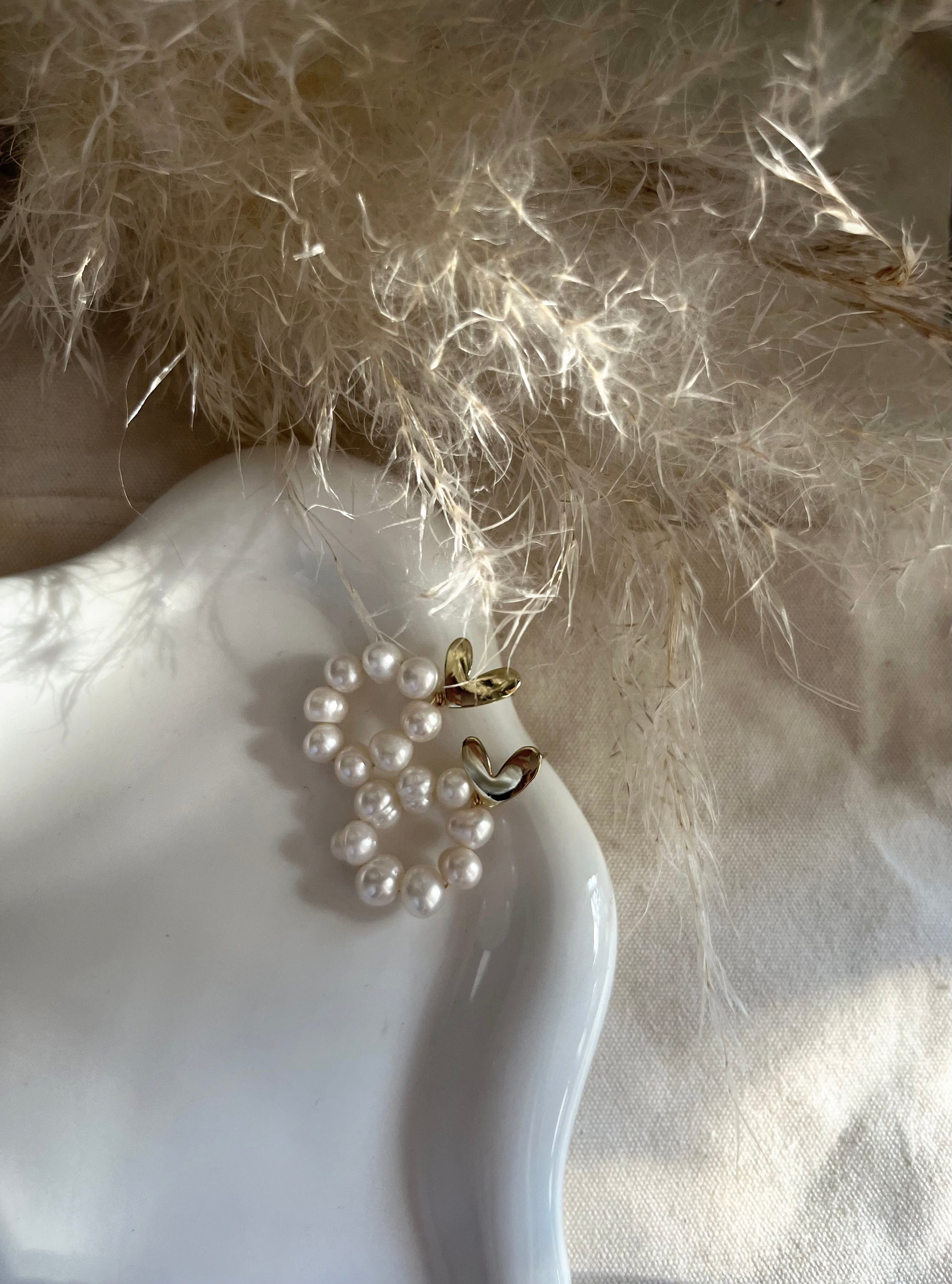 עגילי לב ופנינה